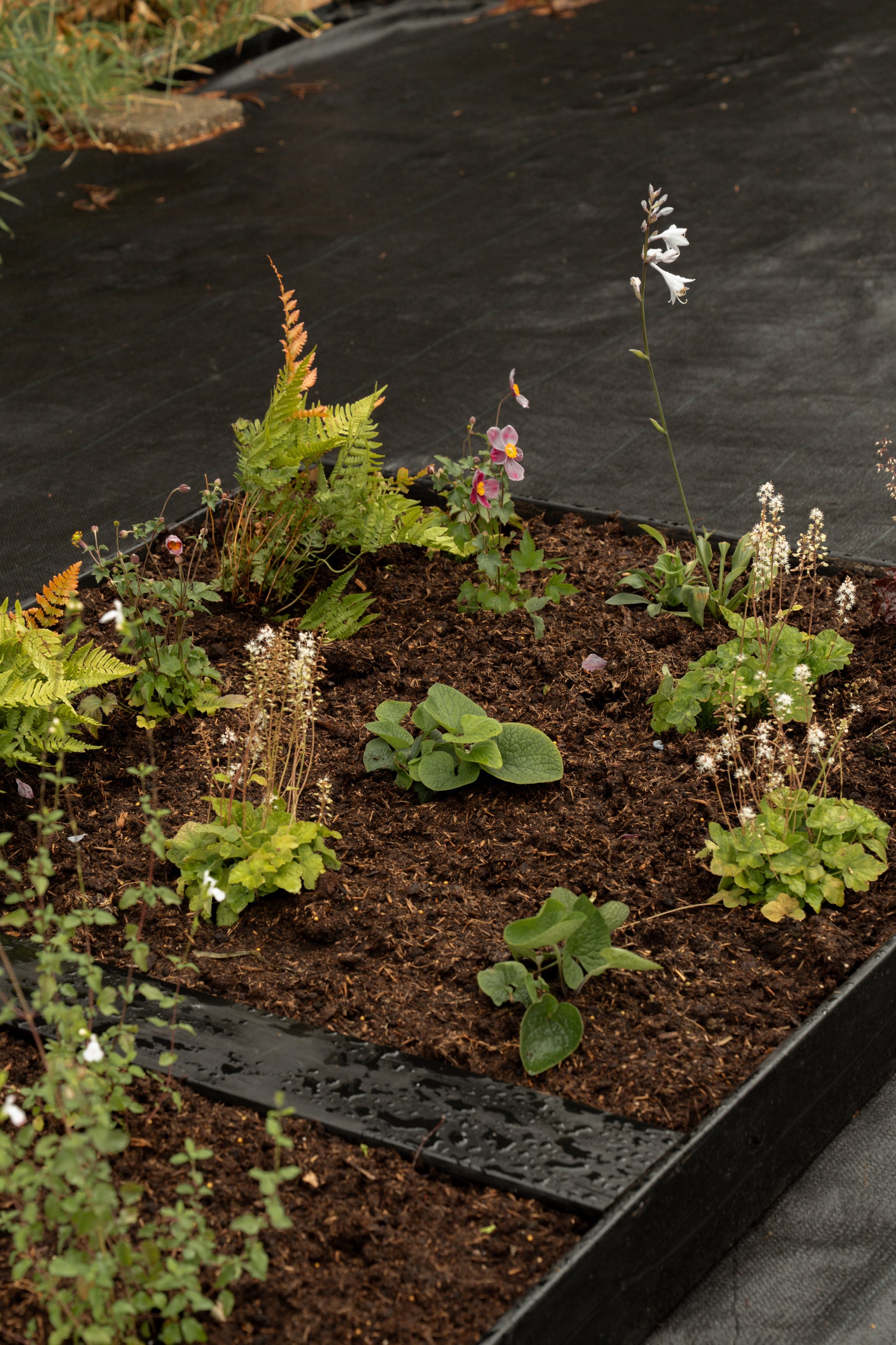 Dit borderpakket is samengesteld voor schaduw en halfschaduw tuinen en combineert vaste planten die elkaar versterken in vorm, hoogte en bloeitijd.